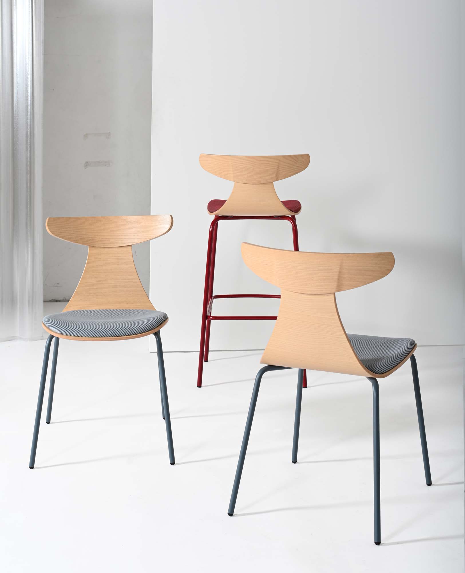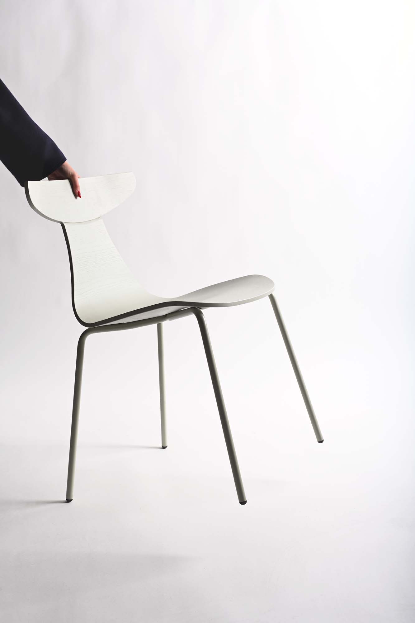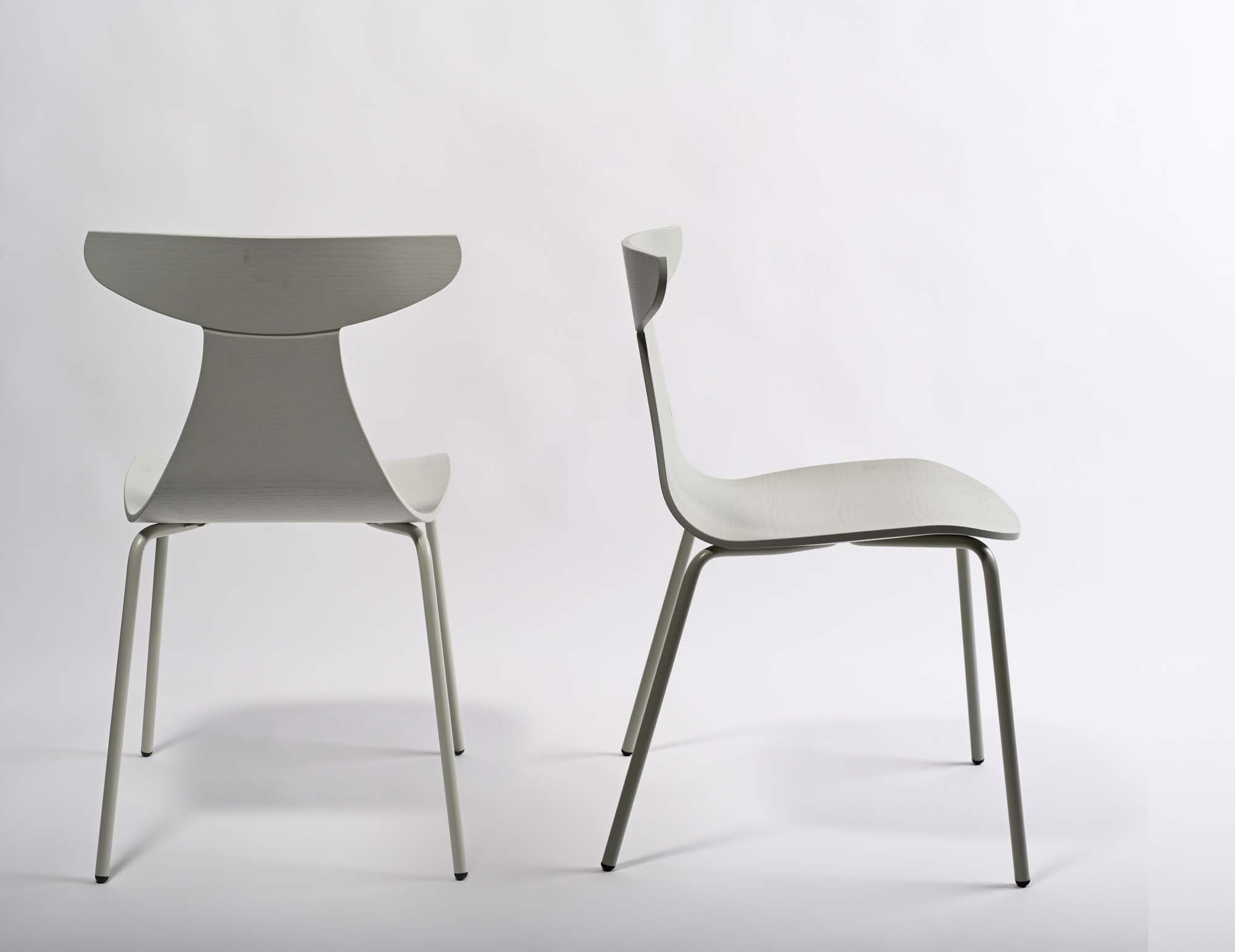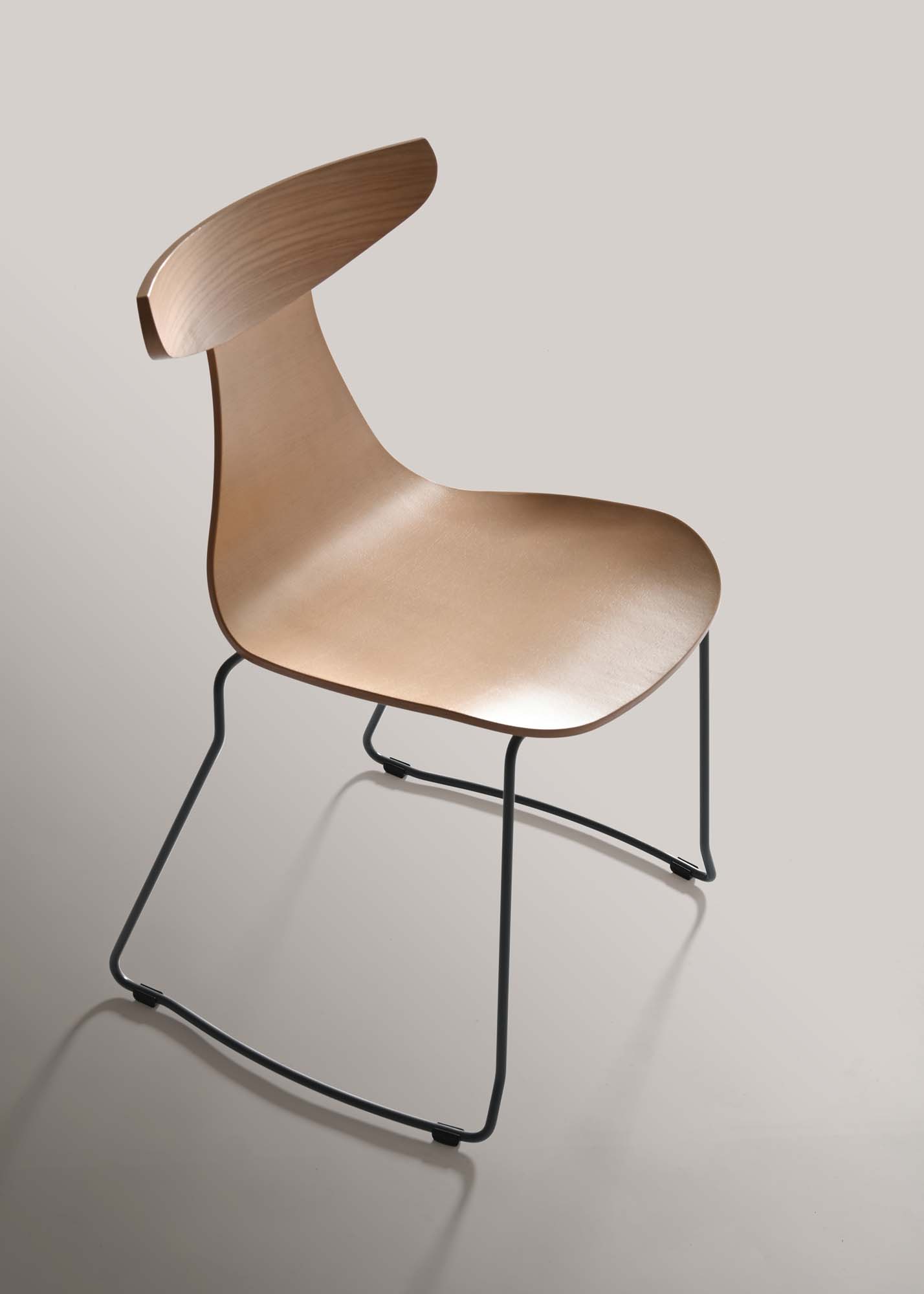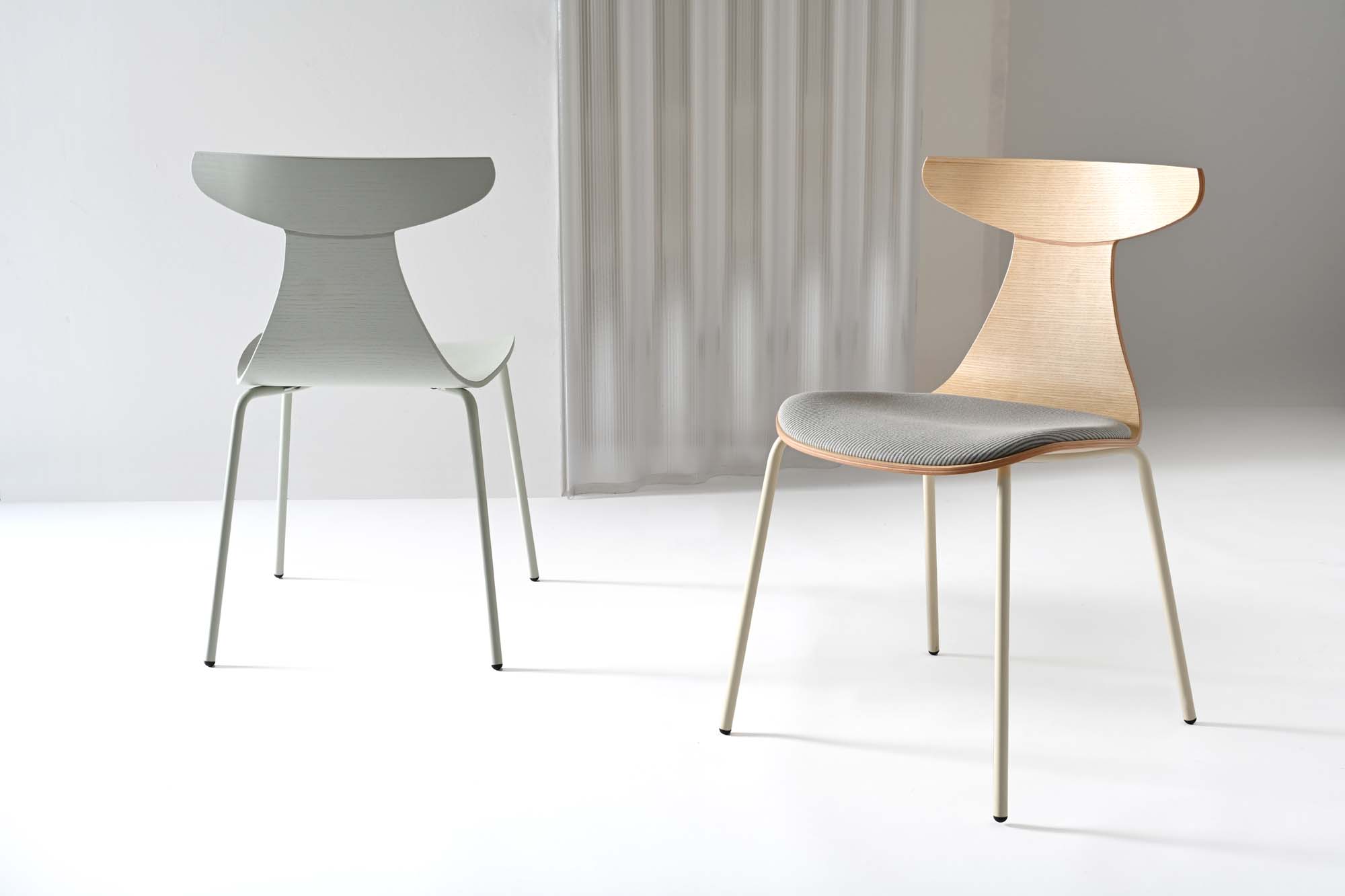 Elegant shell in open-pore ash plywood combined with a backrest that gets out of context. In the Romy version, the backrest is made of finely worked solid ash wood, while in the Romy B version this is incorporated into the monocoque: two different souls for a product that is nevertheless suggestive.
